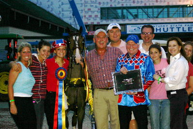 It was hard to tell who was more excited, former owner Sandra Hall or current owner/trainer Matt Shiflet of Diamond View Farm who drove Cosmical to the Kentucky County Fair Roadster To Bike Championship. The powerful Standardbred flew down the rail wearing the roses of a Louisville champion. Mike Felty presented Fed Ex for Deborah Butler to claim reserve honors among seven entries.