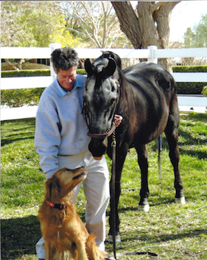 In addition to horses, BJ was synonymous with her work with Golden Retriever companion dogs, especially her beloved Stitch and Petey.
