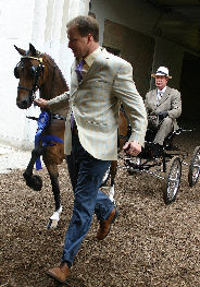The three-year-old sweepstakes brought Rain and Kathy Capsuto into center ring, followed by Bret Day and Last Class in the two-year-old sweepstakes for Fishers Sisters LLC. The two-year-old fine harness division brought Dr. Alan Raun in for a victory pass for owner Libby Mathers.