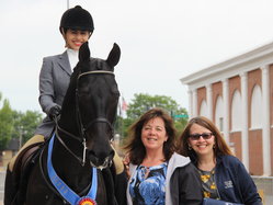 Anne Benson and Cheryl Ricci congratulated Victoria Ricci on her tricolor ride aboard Pinecreek Immortal Vision in Connecticut Morgan's Youth Hunter Pleasure Championship.