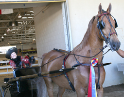 The road horses were back in the ring, this time to the wagon. Judy McNeish sped Invincible Summer into the winner’s circle where she was met by Raymond Shivley. The red ribbon was awarded to Mark Catron and Scatman Du under Steve Hanks’s watchful eye.