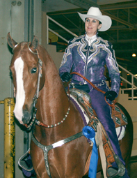 As Allie Wellington trotted out of the arena after garnering the tricolor with CH Mmmbop in the Junior Exhibitor Five-Gaited Show Pleasure Championship, a smile stretched from ear to ear. After she thanked everyone and "Bop", saying, "Wow, that was fun!" The reserve ribbon went to the qualifier winner, CH Sunken Treasure and Drew Taylor Hewitt.