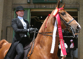 There were a couple of reminders of the late, great Mrs. Alan Robson and her Albelarm breeding program. Albelarm Radiant Lady was glowing with Louis Novak aboard to win the Amateur Three-Gaited Championship and qualifying blue. Showing under the direction of Bob Phillip’s Victory Lane Stables, the grand champions were a nice addition to the Syracuse lineup.