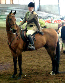 Earning her first ever tricolor, Debbie Mulberry won the Adult Country Pleasure Stake with Undulata’s Clean Sweep. Proud trainer Carol Matton went in to put the ribbon on “Kirby” for the victory pass. The nice Reedann’s Semper Phi took reserve honors in this class with Rivi Hatt. Barbara Southgate was ecstatic to win the 39 and over age split aboard the Peace Giver. In that same class, Highpoint’s Gentleman Dandy was reserve with owner Shelagh Roell, under the direction of Barry Stables. By Trust Fund and out of an I’m a New Yorker daughter, it is no surprise that Tura Lura Lura exudes quality. The elegant six-year-old mare won the 18-38 age group with Sarah Luft aboard for mom, Sue Worzalla. Reserve in this class went to Major Assetude and Tracy Kobs for Kim Johnson.