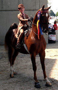 A well-bred son of Designed out of a Phi Slama Jama mare, Royal Crest’s Stone Design won both Junior Show Pleasure classes with Stacy Wessel aboard for Royal Crest Farms. Reserve in both classes went to Midwest’s Junior Show Pleasure Champion and Grand Champion, Callaway’s Investigative Reporter. Also well bred the quality gelding was ridden by Eileen Nemetz.