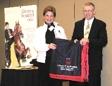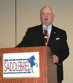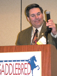 The ASHA Awards luncheon featured two dramatic speakers. Tandy Patrick, chairman of the Kentucky Horse Park and Jim Host, chairman of the 2010 World Equestrian Games, addressed the audience to discuss the upcoming World Equestrian Games to be held at the Kentucky Horse Park in 2010. This is the largest single sporting event to come to the Southeastern United States. It will feature seven equestrian events and officials expect 500-600 thousand people to attend, 40% of those visiting from outside the United States. This is the first time the games have been held within the United States.