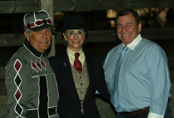 Devon Warm-Up ring sponsors Candi Covino Aversenti and Ed Aversenti are shown here with Charlie Jones. The Aversenti family made a generous donation to build a temporary warm-up ring that was available to Hackney and Saddlebred exhibitors throughout the week. Charlie rolled up his sleeves and installed the ring which several of the trainers took advantage of during the show.