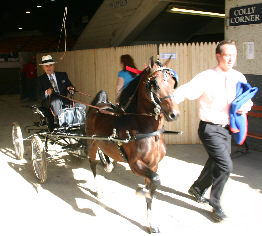 A stablemate to Par Excellence, Sweetheart Of Success paraded down Big E’s victory lane with the Amateur Harness Pony title just ahead of Kathy Comeau and Truly Naughty By Nature. Trained by Rodney Hicks, Truly Naughty By Nature has been teamed by first time pony owner Kathy Comeau to several top titles this year, including the New England Harness Pony Championship at Big E. Janine LaSalle and Sir Galahad were reserve in that one.