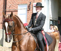 World and National Champion Kyle Gagnon rode away as the Saddle Seat Equitation Grand Champion after qualifying with a victory pass in the 17 and under class. Winner of the UPHA Challenge Cup, Brynne Cummings finished Big E 2007 as the Saddle Seat Equitation Reserve Grand Champion.