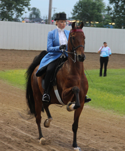 Renee Biggins coached Cindy Carcione and Work It from center ring at Lawrenceburg as they took their victory pass in the Amateur Three-Gaited Championship.