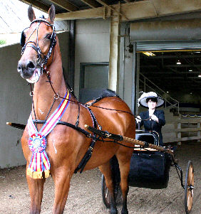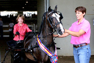 June Davis guided Hollybrook Walk N Tall down victory lane next in the Morgan Junior/Novice Pleasure Driving Championship.