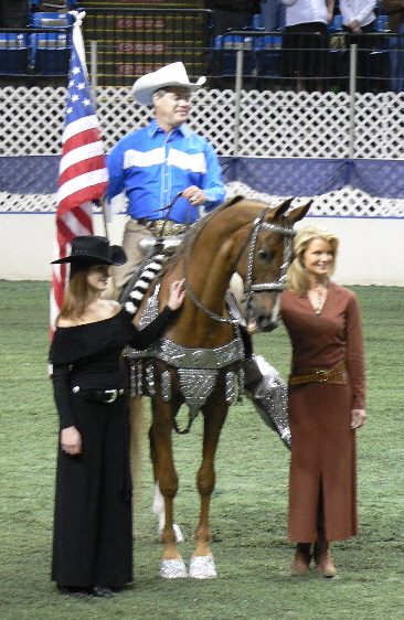 “Someone once said ‘Be careful what you dream for.....dreams really do come true’.....My dream of a silver saddle ride through the horse world has been just that...and tonight, thanks to the American Royal, the UPHA and Kathie, I get to be in the saddle once more. I'd just like to say thank you to the professional horsemen who have been so good to me and allowed me to be a small part of their horse world, and also special thanks to the many friends we have met along the way. Tonight I salute the most wonderful breed in the world...the American Saddlebred...and for those of you who've never been on a saddlebred...take it from me...there's no ride like it. Sitting on top of a special horse again, at least for me, is a feeling I can't describe...but I can tell you this...with you my friends here on such a special night.....it's a whole lot like sitting on top of the world...For my silver saddle ride all through life......I thank you all so much.” – Bob