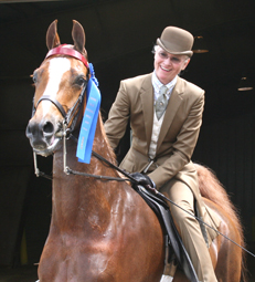 CH Summit Up and Allison Combs had a pleasure perfect ride to garner the blue streamers in the Junior Exhibitor Five-Gaited Show Pleasure.