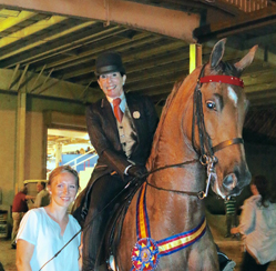 Alexandra Lilly met Allison Combs at the gate after she racked away with the Amateur Five-Gaited Championship with Callaway’s Sweet Thing. ?