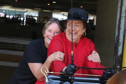Lynda Freseth hugged Nancy Anderson at the gate in Blue Ridge after she won the Hackney Pleasure Driving Pony Championship with Heartland Accolade. Cathy Rogers Holmes and Kristen Cater celebrated Holmes unanimous win with Who in the Show Pleasure Driving Championship at Blue Ridge.