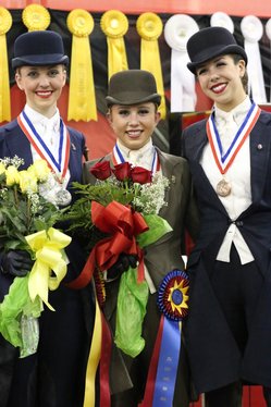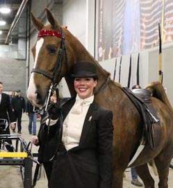 Roseridge’s Dancing Soldier and Elizabeth Ghareeb earned the unanimous victory in the Ladies Five-Gaited Gelding qualifier on Tuesday night at the UPHA/American Royal.