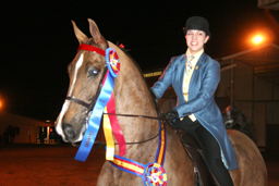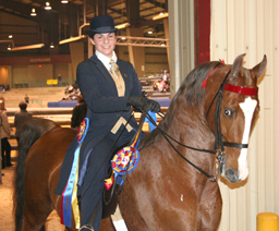 Rebekah Cloninger racked away with the tricolor in the Junior Exhibitor Five-Gaited Championship with CH Dusty Beau