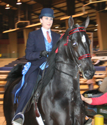 Johnson and McCracken were at the New Holland, Pa., auction late last year when they came across a very flashy black gelding that had no interest in being an Amish driving horse. It was then that Johnson called D’Amato and told her about their newest "treasure". Come to find out, this horse was registered and had been in training with Melinda Moore and Clark Clouse. D’Amato told Johnson to send him to North Carolina as they are always up for helping a horse in need and ready for a challenge. After being in training for the past few months, the decision was made that Dash was ready for the show ring. Dash For Cash made a winning 2008 debut in the Novice Three-Gaited class with D’Amato in the irons.