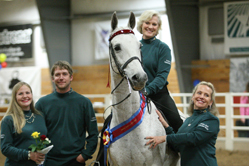 The next year Forrester was leased to Jill Lowry. They won the class at the National Pleasure Show. The Larson’s daughter, Melissa, was the next jockey for Forrester, learning along the way and peaking with a great win at the Denver Stock Show. Tyler Volz and Allison Sara also had their time in the saddle with Forrester.