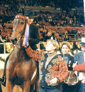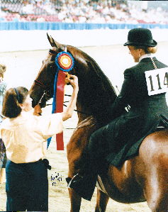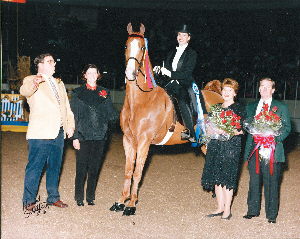 He became Donna’s first performance world’s champion. They were judged the best of 17 competitors in the 1990 Junior Exhibitor 15-17 Three-Gaited Stake.