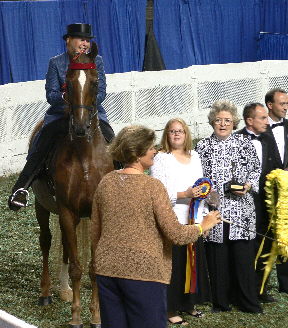 In 2001, Snorty proved his supporters right by winning the Amateur Park World’s Champion of Championship and stallion/gelding world’s championship. It was a great year for Kilday and her remarkable gelding as it was a year that saw them begin to split their time between Kentucky and North Carolina. The next two seasons also proved to be tremendously successful for Kilday and Snorty.