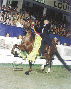 “They called for a workout with Elisabeth Goth and Hollywood Excellence who had won it the year before. The crowd was going crazy and Sweetie just lit up. If you remember that was the year Roz [Harris] had died and it was a pretty somber show. That class pumped Louisville back up. I remember riding down the elevator the next morning with Tom Moore and he said, ‘you put a ride on that mare last night.’ I was so excited that Tom Moore would say something like that to me. I couldn’t believe it. We came back and won the championship and it was my 40th birthday. That was so cool.