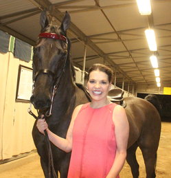 Deb Phelan posed with AMHF Black Magic at The River’s Edge stalls after trainer Mary Cockriel rode the mare to her winning debut under saddle in the Morgan Open English class at Carousel Charity.