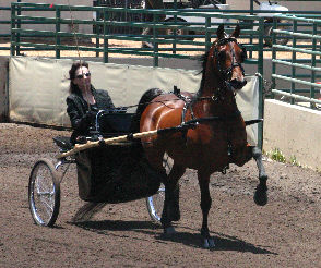 Vegas Valley Morgans ended up with four wins out of four appearances in the pleasure driving division. Elaine Galatz drove CPM Man Oh Man to the Ladies Pleasure Driving win, and then returned to win the amateur championship. She drove stablemate VVM Wrapped In Roses to the win in the amateur qualifier and also took the victory pass in the junior horse class.