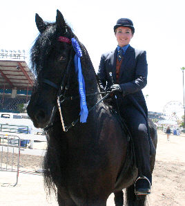 Black Sterling Friesians had a great show including Julia Goldman’s winning ride with Ronald in the Open English Pleasure Stake, which was huge with 14 entries. She had also ridden Ronald to the junior exhibitor qualifier win. Barend Schuursma and Laurens, also from Black Sterling Friesians, took the reserve ribbon in the stake for Ron and Janna Goldman.