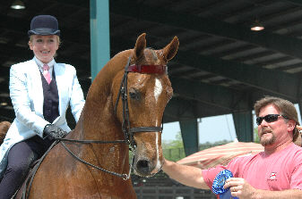 The 2007 Dixie Cup came to a tricolor close with the Five-Gaited Stake as Bill Schoeman directed Chief’s Top Commander to the tricolor honors. The bright chestnut was reminiscent of his world grand champion sire as he earned the qualifier and championship wins for Samuel Webster. Chris Mart Peypers and Kenora made a bright showing for the reserve honors. The junior/novice class was the largest of the division with James Hale and Simeon racking away with top honors in the hotly contested event.