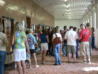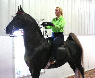 After the last weanling, everyone adjourned back inside where they were treated to an under-saddle display of Sir William Robert’s power and talent. Dena seemed to enjoy ripping down those long aisles, not unlike a road horse under saddle, but in distinct Saddlebred form. On each side of the barn she and the fabulous stallion paused to catch a breath and let spectators catch one last eyeful of the beauty that is Sir William Robert.