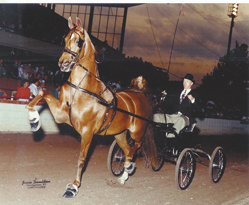 “That mare and Terri were a perfect match,” said Shively. “That mare was so pretty and had so much motion. I remember leading her down the ramp at Louisville one time and her knee was over the top of my head. She was so gifted, no mechanics required. We rode her a little just to do something different and she did that pretty well too. I loved that mare. She was good every day. We hardly ever hooked her, just long lined a lot.”
