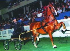 Following that year he was placed in Tom Moore’s hands. He won championships at Rock Creek, Lexington, and Mercer County before claiming the 1993 Fine Harness World’s Grand Championship, his first. That year he beat the great CH Roselawn’s Secret Rhythm, Storm Chaser, The Savoy and Don’t Tell Mama to wear the roses. The next season would be a repeat with championships from Rock Creek, Lexington and Louisville.