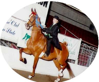 Born in 1986, I’m Prestigious was bred by Silver Brook Stables. By Nelson County, a Supreme Sultan son, and out of a daughter of CH Courageous Admiral, there was no question that “Wally” was bred to be a show horse. He was first purchased by John Owens and shown by son Tuffy with Rick Wallen as trainer.