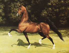 in the three-gaited division before retiring to stud. (Painting by Walter Brown)