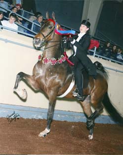 His show ring career began with Milo Jones, one of his first owners. He was then sold to Elaine Gregory and on to Armon Effinger before he found a home for life at Sherry Frankel’s SGF Winning Ways Farm, Tomball, TX.