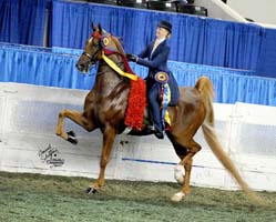 As a junior horse in 2009, his career really took off as he earned wins and top ribbons in the park division including many times in the open ranks. His Three-Gaited Park Grand Championship win at Kentucky Fall Classic with Elam riding closed out his four-year-old season.