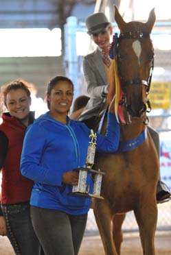 Nicole Foster and Stephanie McKinsey with Katie Rich start out Katie's new career in Saddle Seat Equitation with a win in the championship at TASHA.