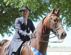 Frank Jones went two for two, winning both the Adult Five-Gaited Show Pleasure qualifier and championship at the Dixie Cup Spring Classic aboard Ken Follet. Lisa Rosenberger Jones trains the team at Creekside Farm.