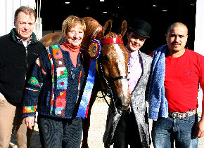 The final class of the night, the Ladies Five-Gaited National Championship, drew in a large crowd. Ten lady riders showed their support for finding a cure for breast cancer. The ribbons were announced in reserve order, and the last team standing at the far end of the ring was Gayle Lampe and CH Callaway’s Born To Win. Decked out in her red coat and pink vest and shirt, with pink ribbons in the gelding’s mane, Lampe was proud to show her support and was thrilled with the honor of being named the first unanimous winner of the Pink Ribbon class. After all the money collected and donated during the night was tallied a grand total of $16,216 will be sent to the Susan G. Komen For The Cure Foundation.