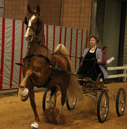 CH Our Brilliant Belle and Mary Gise headed to the ring at Chapter 5 to top a competitive Amateur Fine Harness Championship. They also won the ladies class.
