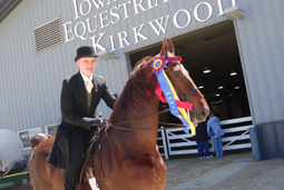 After only a few rides on her new mount, King Of The Blues WVF, Caitlin Donohue was set to show. In her debut performances with the big chestnut gelding, she was reserve in the Amateur Three-Gaited qualifier, but came back to win the open stake. Reserve in the open stake went to the open qualifier winner, The Velvet Cat, and Allison Rohloff. Trainer Mark Van Zomeren qualified the horse for Rohloff. Born The Best, a flashy walk/trot horse trimmed in white won the Junior/Novice Three-Gaited class and the amateur/junior exhibitor stake class with Curt Kligora for Dr. Meg Knowles under the Clean Sweep Banner. The Junior Exhibitor Three-Gaited winner, Aphrodite’s Tears, was reserve in the stake with beautiful riding Paige Guisfredi aboard.