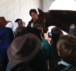 Jackie Hale and CH Inphallible visit an elementary school in Birmingham, AL last Friday and participated in their Frontier Days program. Over 200 third graders learned about the history of the American Saddlebred during the 1800s.