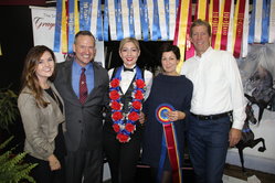 Julianne Rafferty, Phil Fountain, Roseann and Russ McBain helped Hannah McBain celebrate her second consecutive World Champion Youth English Pleasure title with the grand stallion Graycliff Tony GCH.