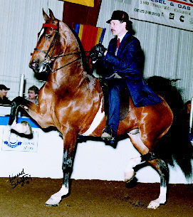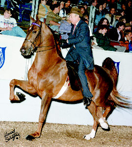 Roos has had numerous horses with Hite and Ciampoli over the years. From 1990 through 1996, she and CH Goodnight Irene were fixtures in the winner’s circle. When the mare was sold, she bought a young horse. They called him Cranston – for Lamont Cranston, title character in the hit radio show for which he was named: The Shadow Knows. She and Hite selected the future world’s champion together. Today Roos shows CH Treasured Memories, a three-gaited show pleasure mare that won all but one class last season.
