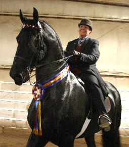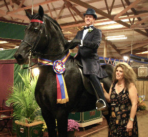 Dante was the Open Park Saddle Friesian World Champion with Robb Wallen up for Tammy Hildreth of Friesian Quest.