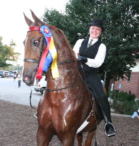 Sarah Thordsen and Talon sank their claws into the competitive Five-Gaited Show Pleasure Stake and came away with the unanimous victory. CH Chandler and Lisa McClaren were a picture of pleasure perfection to earn the reserve tricolor. The results were the same in the qualifier.
