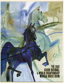Bob Crawford enlisted Pettie to paint her first Morgan Grand National program cover in 1994 (left). She donated the artwork again in 2002 and 2007 (right).