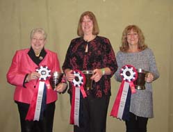 Enjoying Canadian National Champion honors from the Royal Winter Fair were Marj Kenney (The Perfectionist), Maureen Quackenbush (Four Point O) and Donna White (Mastercraft's Lilli LF).