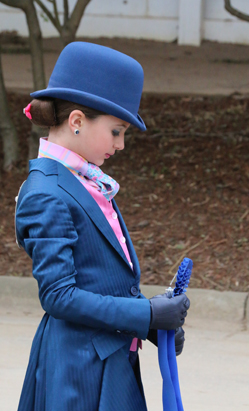 Ava Kimmel looked down at her blue ribbon after winning the 8 & Under Walk-and-Trot Equitation class aboard CH Tax Man. They returned to win the championship under the direction of Mike and Jessie Richardson at the Raleigh Spring Premier.